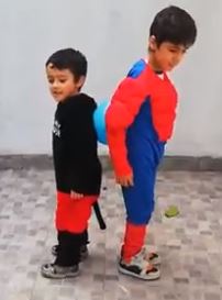 O 3º jogo tinham de fazer um trajeto com o balão no meio das pernas, depois nas costas, e depois na cabeça.